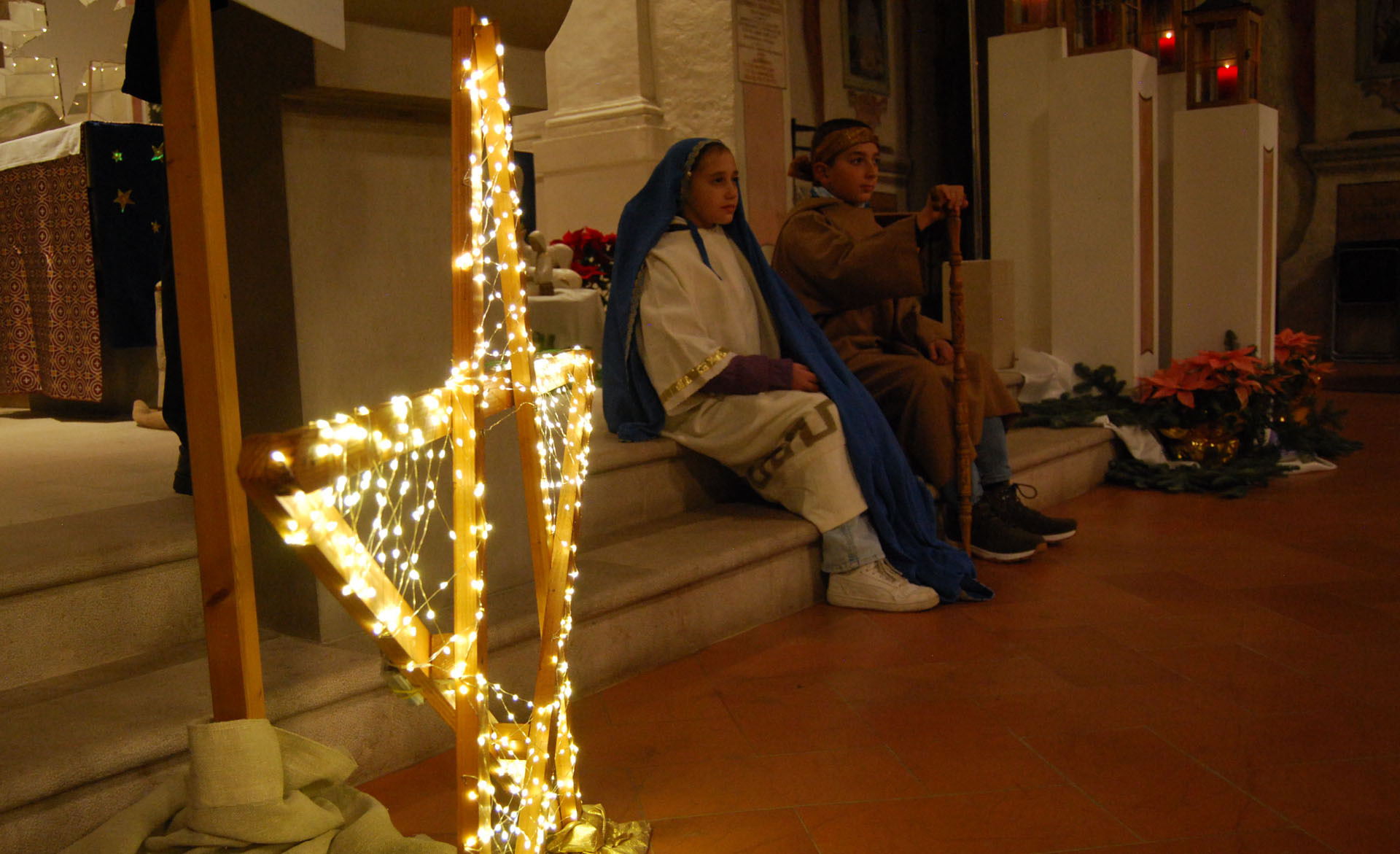 Molto ben riuscita e partecipata la Veglia d'Avvento organizzata dal Vicariato del Mendrisiotto domenica scorsa, 15 dicembre, a Morbio Inferiore. Il centinaio di persone, tra grandi e piccoli, hanno fatto un percorso a partire dal sagrato della chiesa di S. Rocco, con soste di preghiera-riflessione-canti nel nucleo del paese (compresa la tappa davanti alla moderna cappella di S. Teresina di Gesù Bambino) fino alla chiesa di S. Giorgio, dove si è potuto ammirare, in una grotta, la suggestiva rappresentazione vivente della Natività. Il tema conduttore è stato quello del prossimo Giubileo: "Pellegrini di speranza". Arrivati poi davanti alla facciata di S. Giorgio, si è spalancata la porta infiorata e la suddetta Natività vivente, rappresentata da due ragazzi con un neonato, aveva come sfondo il bellissimo affresco cinquecentesco del Natale, che riempie l'intera abside della chiesa romanica (v. foto). Un momento conviviale con bevande calde ha concluso il bell'incontro.